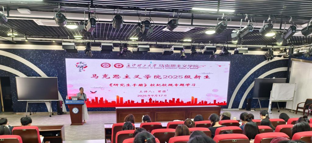 为帮助2025级新生尽快了解学校规章制度、明确学习科研目标、顺利开启研究生学业新征途,9月17日上午11:00,马克思主义学院在云塘校区文科楼B300报告厅开展《研究生手册》校纪校规专题学习活动。本次活动由院学生工作办公室主任、辅导员曾蓓主讲,2025级全体研究生参加。