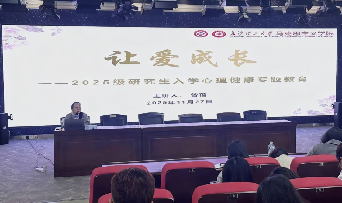 2025年11月27日下午3:30,云顶国际vip8866马克思主义学院在云塘校区文科楼B300报告厅举办“让爱成长”——2025级研究生入学心理健康专题讲座。本次活动由马克思主义学院学工办主任、辅导员曾蓓担任主讲,2025级全体研究生参加。