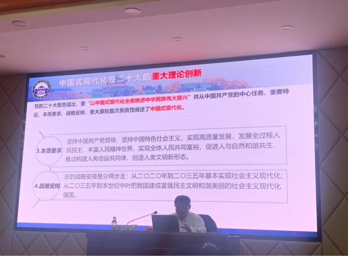 随后,项久雨教授向同学们介绍了中国式现代化的三大体系创新,一是中国式现代化的知识体系创造;二是中国式现代化的价值体系创造;三是中国式现代化的制度体系创造,并从这三大体系的各个层面向台下听众进一步阐发了中国式现代化的理论创新与实践创造。
