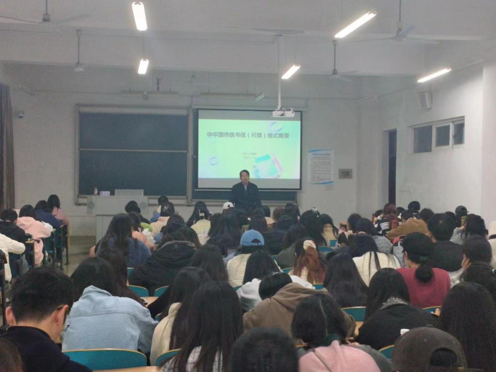 文老师首先介绍了传统书信的价值与意义。他指出,传统书信是中华文化的瑰宝,蕴含着丰富的文化价值、审美价值和历史价值。即使从实用性上来说,虽然电话、社交软件等现代通信方式由于其便利性逐渐取代了传统书信的地位,但传统书信表述形式有时仍有用武之地。