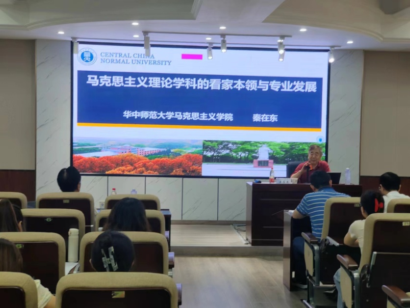 2024年6月15日下午,教育部高校马克思主义理论类专业教指委委员、华中师范大学马克思主义学院原院长、博士生导师秦在东教授应邀来到马克思主义学院,在云顶国际vip8866云塘校区文科楼D207报告厅主讲了“马克思主义理论学科的看家本领与专业发展”的学术讲座。本次讲座由我院张明海院长主持,文贵全副院长、王威峰副教授、陈方芳博士等学院教师和研究生近100人聆听讲座,此外,湖南文理学院党委副书记李红革教授也应邀参加了讲座。