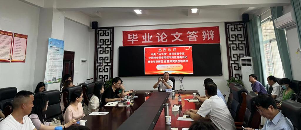 6月17日上午,中央“马工程”项目首席专家、中国社会科学院哲学所原党委书记、博士生导师王立胜研究员来到马克思主义学院,在云塘校区文科楼B602作了题为“从‘三源’看习近平文化思想”的学术讲座。本次讲座由院党委书记陈万球主持,张明海院长、文贵全副院长、院教授委员会主任余乃忠、委员赵玲玲教授、近五年新进青年教师以及硕士研究生参加。