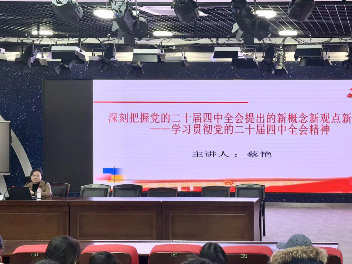 蔡艳以“深刻把握党的二十届四中全会提出的新概念新观点新论断——学习贯彻党的二十届四中全会精神”为主题,为在场学子带来了一场兼具理论深度与实践价值的专题分享。讲座伊始,她强调,党的二十届四中全会是在“十四五”即将收官、“十五五”即将启幕的关键节点召开的重要会议。全会审议通过的《中共中央关于制定国民经济和社会发展第十五个五年规划的建议》不仅是中国经济社会发展的重要蓝图,也是实现高质量发展的战略指引,涵盖了多个领域的改革与发展目标,为未来的可持续发展奠定了基础。对于青年学子认清时代方位、找准奋斗方向具有重要指导意义。蔡艳围绕全会提出的新概念新观点新论断对《建议》内容进行了系统拆解与深入解读。她从“十五五”时期的历史方位、“十五五”时期经济社会发展的指导方针和主要目标等六个方面,带领同学们深入学习二十届四中全会精神。