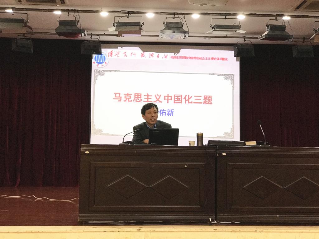 3月27日下午,教育部特聘教授、湘潭大学马克思主义学院院长李佑新应邀做客云顶国际vip8866“马克思主义理论大讲坛”第三讲。他主讲的主题为“马克思主义中国化的几个问题”。校党委副书记邹宏如、人文社科处处长卿定文、马克思主义学院党委书记易显飞等一同参加了此次大讲坛。讲座由马克思主义学院院长陈万球主持。