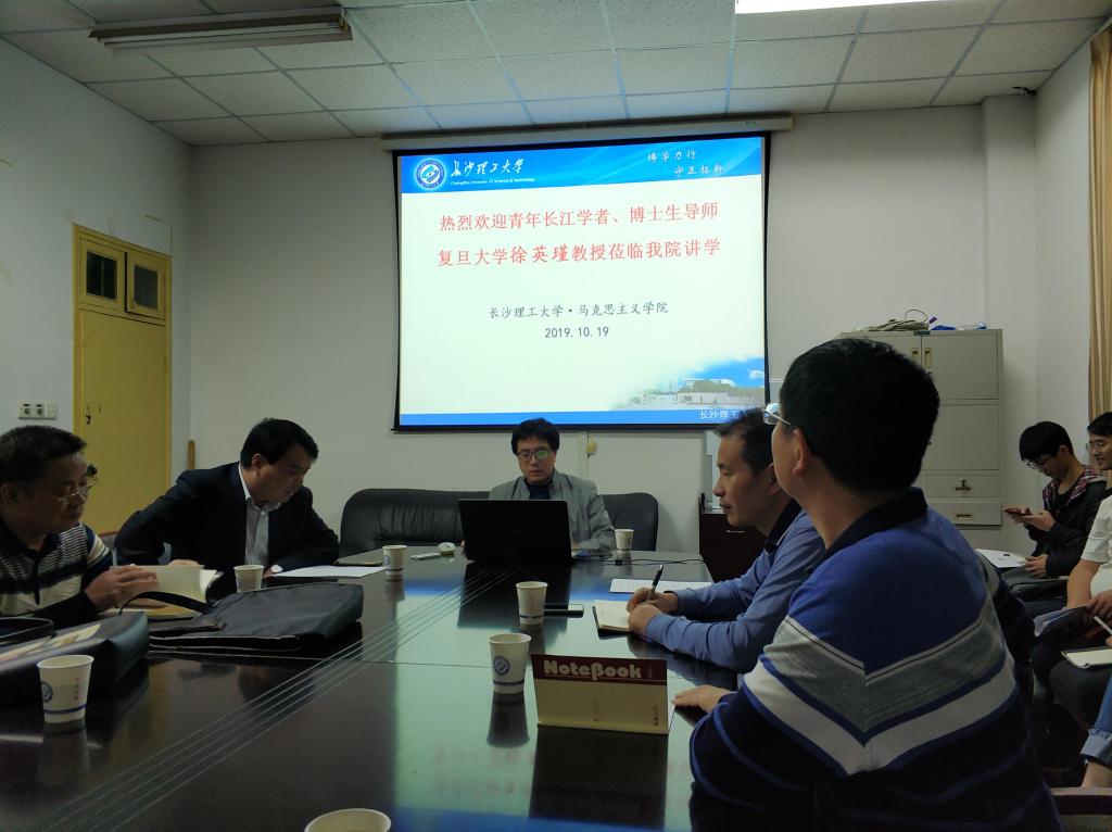 2019年10月19日晚,复旦大学博士生导师徐英瑾教授应邀莅临马克思主义学院,在云顶国际vip8866金盆岭校区4-503会议室作了题为“人工智能研究并不是你想的那样”的学术讲座。学院党委易显飞书记、陈万球院长,院教授委员会主任余乃忠教授,蒋显荣副教授、邓治文副教授等学院部分教师、研究生聆听讲座,讲座由陈万球教授主持。