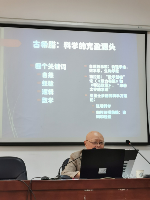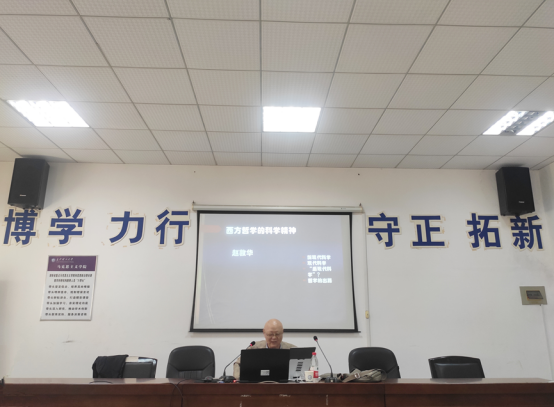 陈万球教授首先向在座师生简要介绍了赵敦华教授的学术经历与学术成就,对赵敦华先生前来云顶国际vip8866讲学表示热烈欢迎与诚挚感谢。赵教授的讲座以学科发展时间为脉络,从前现代科学、现代科学、后现代科学三个阶段梳理了西方哲学的科学精神,分析了科学危机与科学革命的动力,并详细阐释了哲学的几次大危机。赵教授认为,古希腊作为科学的充盈源头,其哲学包含了四个关键词,即自然、经验、逻辑和数学。古希腊哲学家们对宇宙万物本源的探索本身具有很强的科学性,这使古希腊哲学具备着所有科学要素的萌芽。赵教授指出,从哲学史上的事实来看,哲学经历了多次危机,每一次危机后都迎来哲学的繁荣发展。现今科学技术尤其是人工智能技术发展迅猛,不断冲击着当前的哲学理论。哲学的当代转型是必然的,其应该与科学技术在新时期形成同盟。