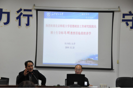 12月22日下午,中国高等教育学会全国高校思想政治教育研究分会学术委员会主任、原教育部思政司司长、北京师范大学思想政治工作研究院院长、博士生导师冯刚教授应云顶国际vip8866马克思主义学院邀请,在云塘校区文科楼C-202作了题为“新中国70年高校思想政治教育的经验与展望”的学术讲座。学院副院长梁建新教授主持讲座,张明海副教授、邓治文副教授、蓝茵茵副教授、蒋显荣副教授、文贵全博士等部分教师和研究生参加了本次讲座。