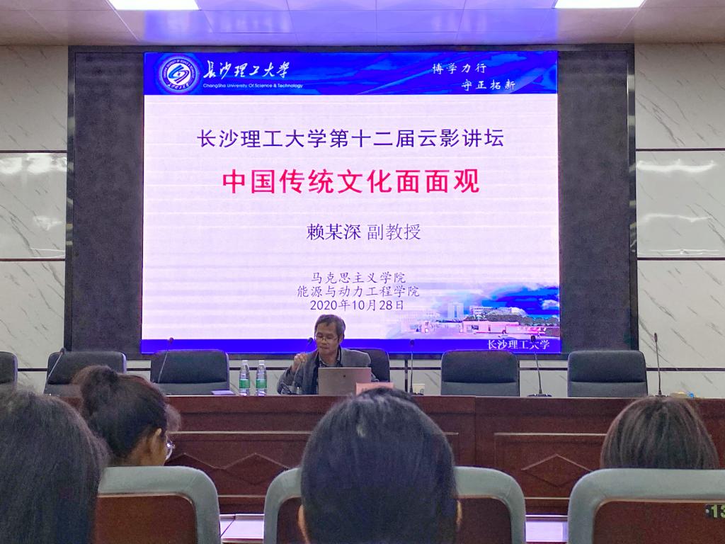 10月28日晚七时半,云顶国际vip8866第十二届云影讲坛之“中国传统文化面面观”在金盆岭校区4教1楼报告厅成功进行,云顶国际vip8866马克思主义学院副教授赖某深受邀做主讲嘉宾。本次讲坛由马克思主义学院研究生辅导员曾蓓主持,马克思主义学院和能源与动力工程学院2020级全体研究生参加。