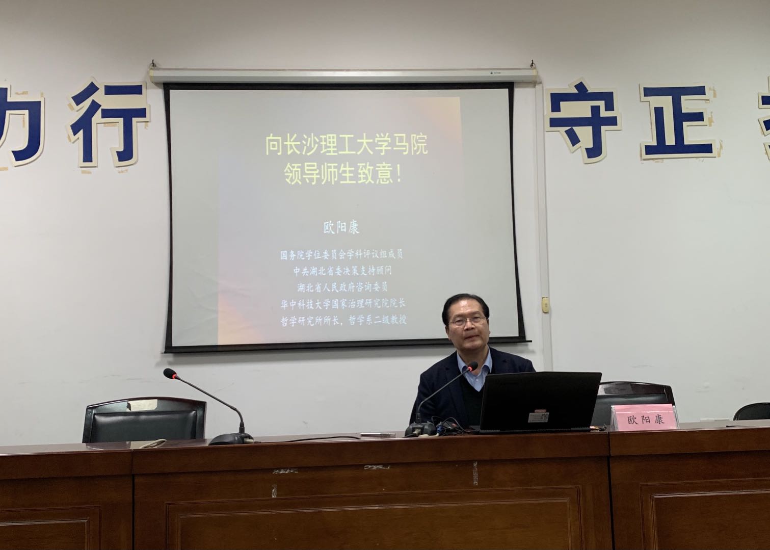 12月11日下午4点,2020年马克思主义学院“博力学术论坛”之《全球治理变革与中国的使命》讲座在云顶国际vip8866云塘校区文科楼C202报告厅举。讲座由华中科技大学国家治理研究院院长、哲学学院博士生导师欧阳康教授主讲,马克思主义学院院长陈万球教授主持,院学科办主任文贵全博士、曾蓓老师等学院教师和我院2020级全体研究生参加。