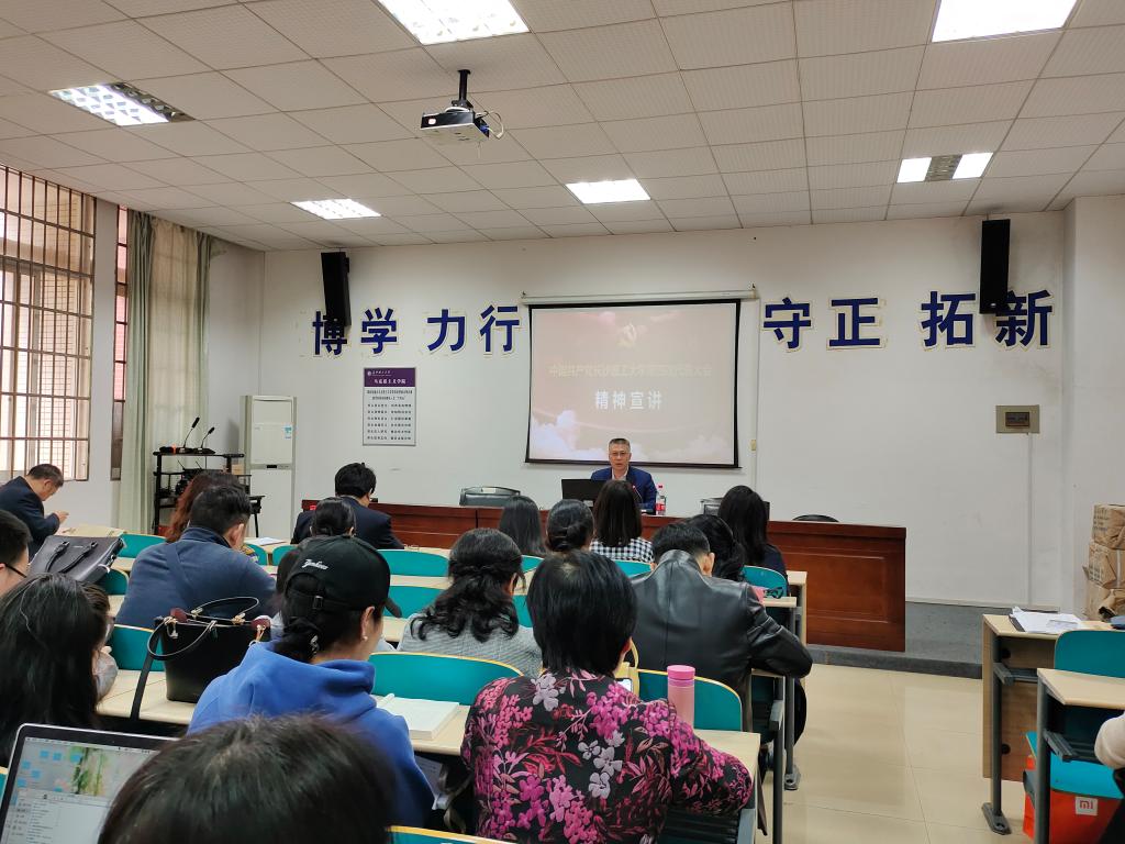 2021年4月20日下午3点,校党委副书记蒋昌波在云塘校区文科楼为马克思主义学院全体教职工宣讲学校第四次党代会精神,马克思主义学院党委书记易显飞主持了此次宣讲会。