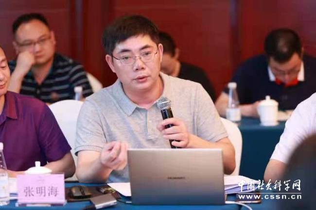 张明海就课题的研究背景和选题意义、总体框架和研究内容、研究思路和研究方法、重点难点及创新之处、预期目标和研究成果等方面作了详细汇报。