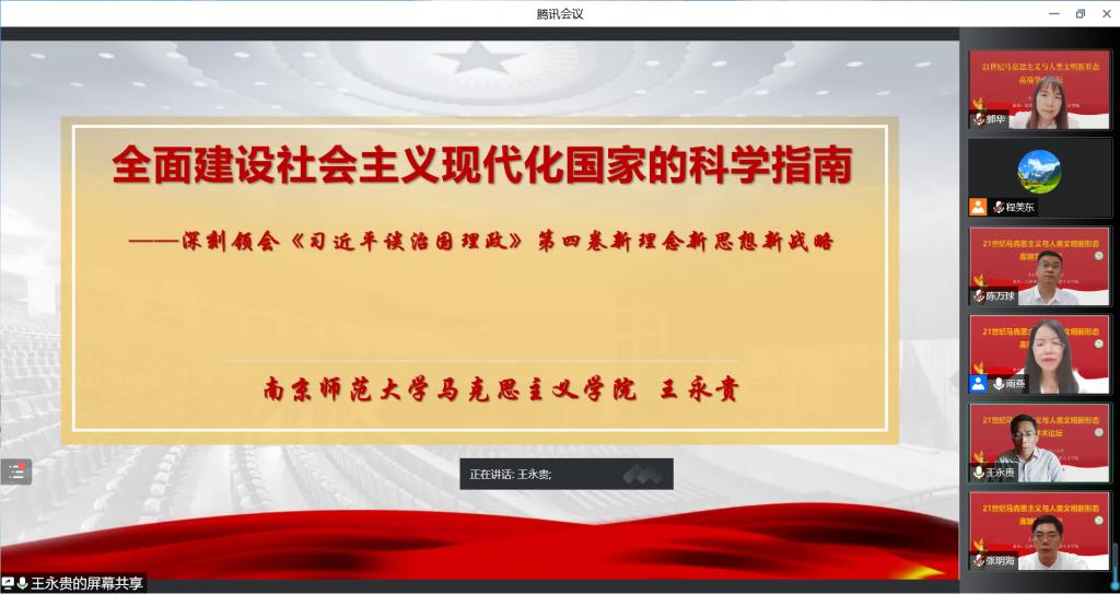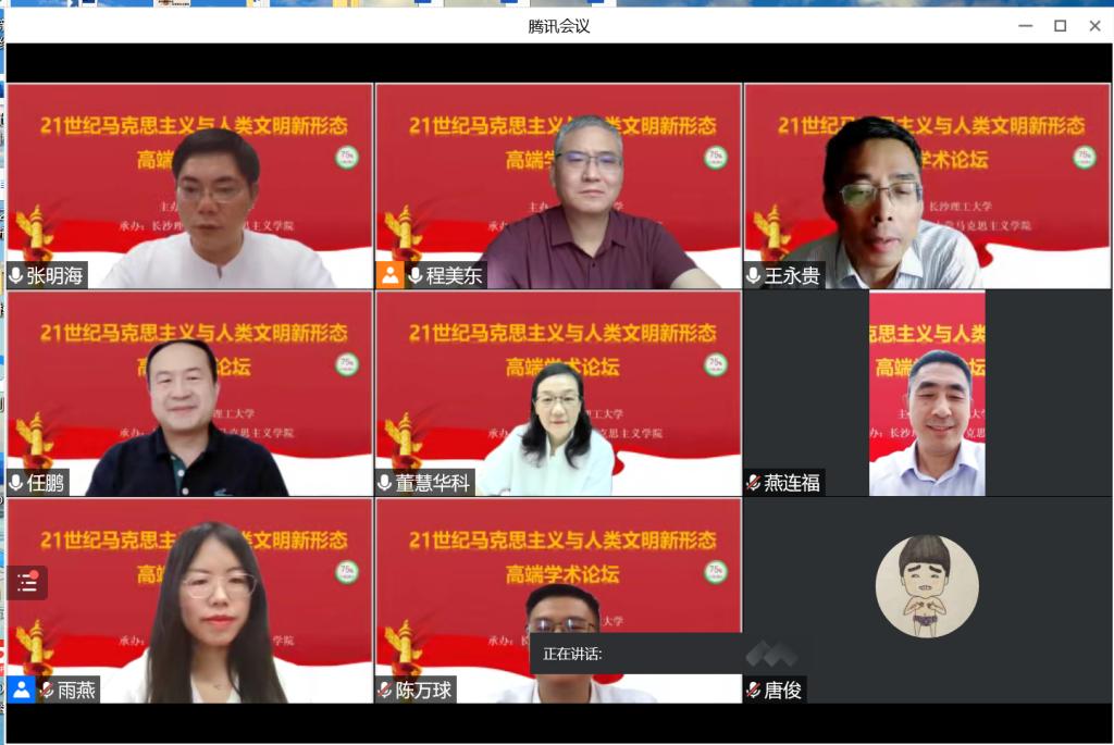 为深入学习《习近平谈治国理政》第四卷以及领会习近平总书记 2022 年 7月 26 日在省部级主要领导干部专题研讨班上的重要讲话,云顶国际vip8866马克思主义学院于2022年9月6日下午开展了“人类文明新形态与21世纪马克思主义”高端学术论坛(四)。本次论坛采用线上线下相结合的方式,论坛由马克思主义学院副院长李雨燕主持,马克思主义学院党委书记陈万球、院长张明海以及马克思主义学院全体师生共计两百余人参加了本次论坛。