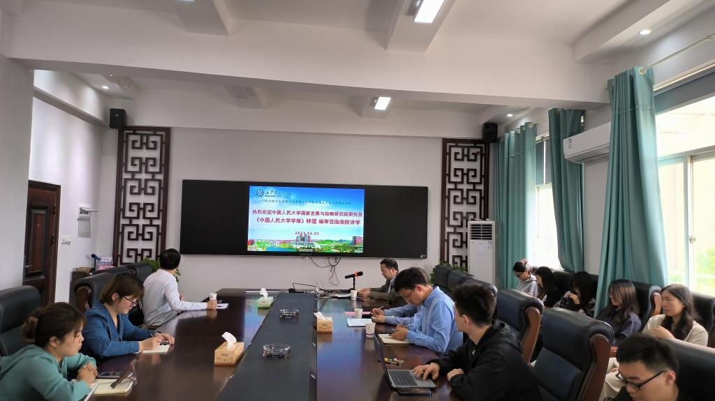 2023年4月3日上午,中国人民大学国家发展与战略研究院研究员、《中国人民大学学报》编审林坚老师应邀来到马克思主义学院,做客云顶国际vip8866第十九届博力学术论坛马克思主义学院分论坛,在云塘校区文科楼A602会议室作了“学术话语体系与学术规范”的学术讲座。我院王威峰副院长、院学科办文贵全主任等教师和研究生共40余人参加了此次讲座,讲座由院教授委员会主任余乃忠教授主持。