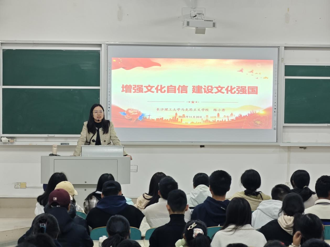 为引导青年学生认真学习和深刻领悟中华优秀传统文化、革命文化和社会主义先进文化,坚定文化自觉与文化自信,成长为中华文化的“代言人”“传承人”。我院教师陈小丹讲师于2024年11月20日晚上7点在云塘校区A302进行了主题为《增强文化自信 建设文化强国》的通识教育讲座。