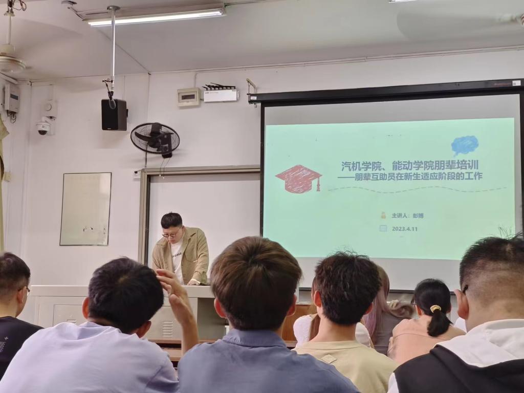 4月11日下午,能源与动力工程学院2022级朋辈心理互助员培训会于金盆岭校区12教205举行,本次培训由能动学院心理辅导员彭博授课,能动学院与汽机学院2022级朋辈互助员共同参加。