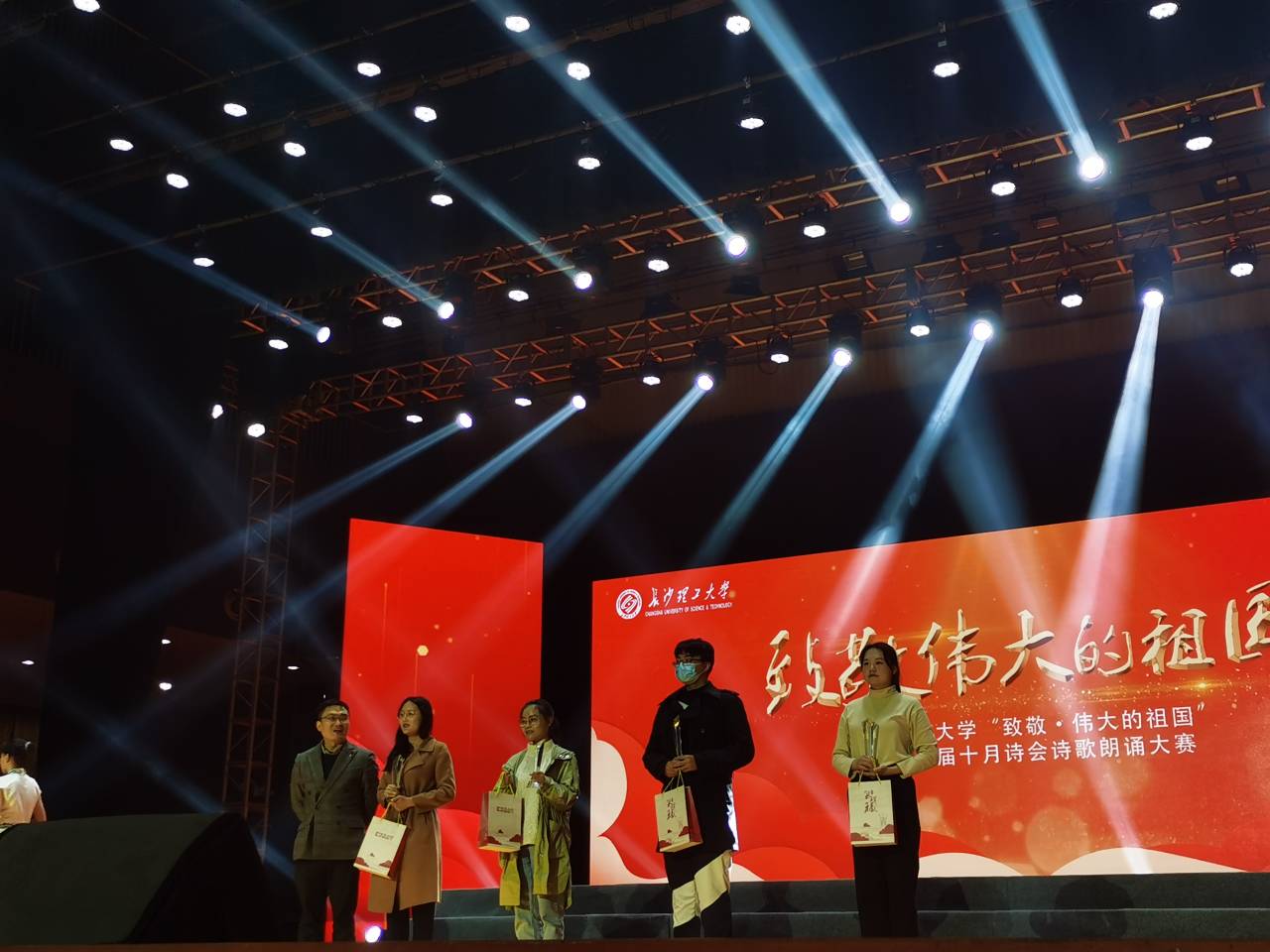 为传诵爱国的时代主旋律,致敬伟大祖国,云顶国际vip8866于11月22日晚19:00,在云塘校区大会堂举办了“致敬伟大的祖国”主题十月诗会诗歌朗诵大赛。