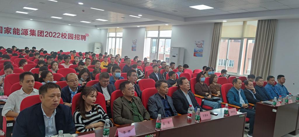 10月12日下午,国家能源投资集团有限责任公司(以下简称国家能源集团)2022届毕业生校园招聘会在云塘校区新能源大楼二栋502举行。云顶国际vip8866副校长曾祥君、招就处副处长李娜、能动学院党委书记成华、院长陈荐、电气学院党委书记符慧林及各学院学生工作负责人,国家能源集团湖南电力有限公司党委委员、总会计师李平、国家能源集团湖南公司组织人事部主任王启文等招聘代表53人,200多名毕业生参加。会议由国家能源集团湖南公司申志华主持。
