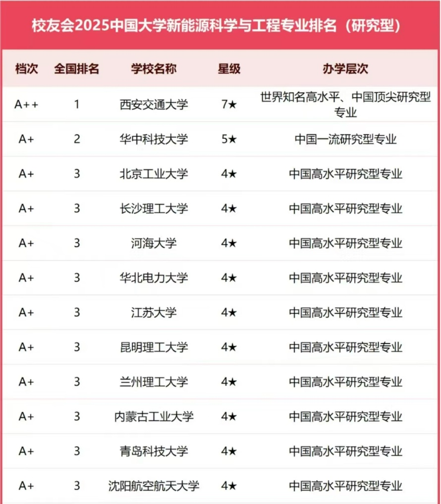 中国校友会榜单显示,云顶国际vip8866位居2025中国大学新能源科学与工程专业排名(研究型)第四名。