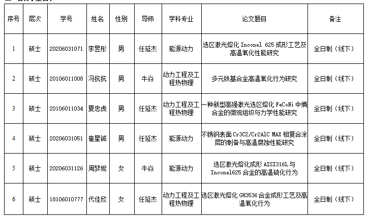 二、答辩学生名单