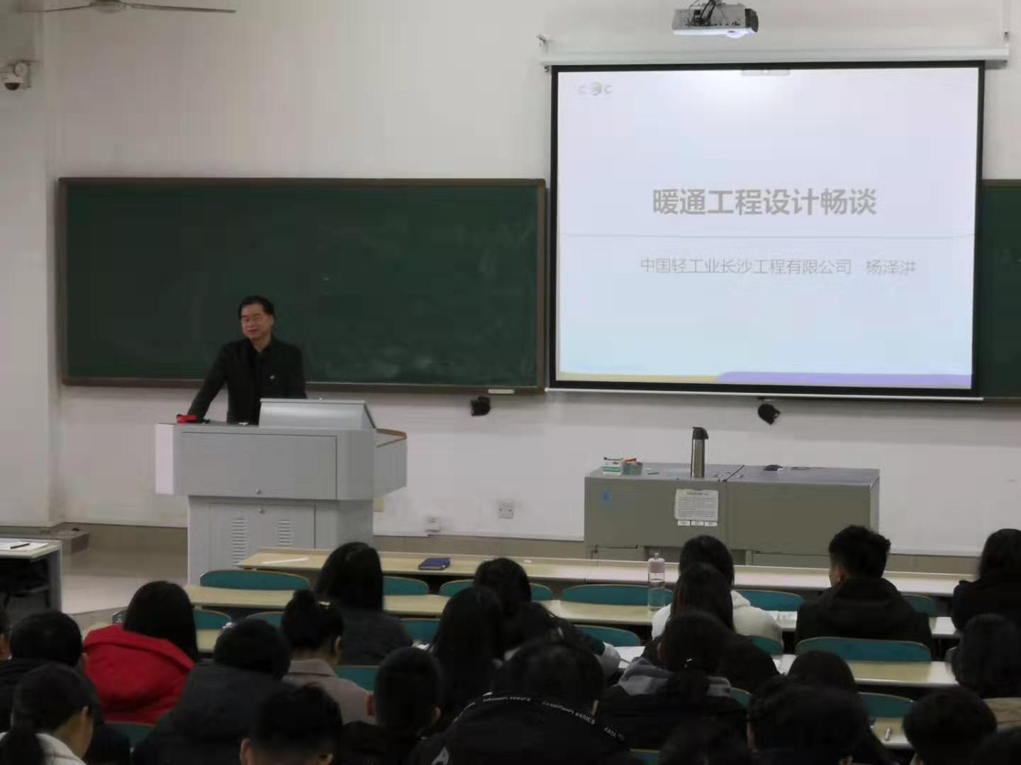 为人才培养与用人单位的实际需求脱节的问题,建环系于2017年开始在各教学环节引入企业导师。本次动员特邀请长沙理工大学建环专业企业导师、湖南省暖通行业知名专家,中国轻工业长沙工程有限公司总工程师杨泽洪教授级高工为大家进行了关于暖通工程设计的专题讲座。杨总工从近四十年设计经验的角度出发,通过历年参与的实际项目案例,为大家详细介绍了暖通工程项目实际应用中出现的设计问题与解决方法。