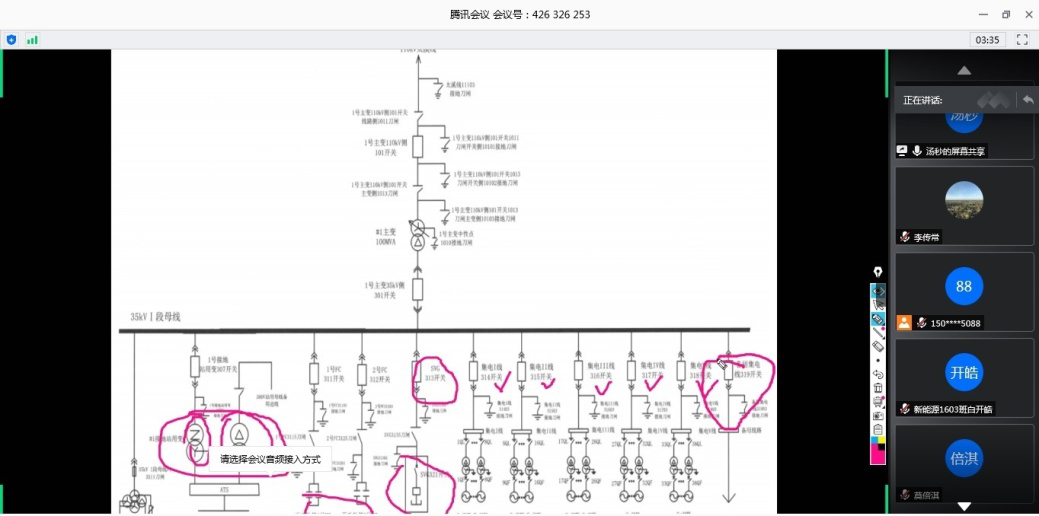 优秀校友江西大唐国际新能源公司风电场运行值长汤秒主讲内容为风电场升压站高压开关介绍及控制原理。汤秒对风电场主接线图进行详细介绍,并结合自身工作经历说明了风电场注意事项,最后对同学们咨询风电场生活方面的问题一一作出解答。