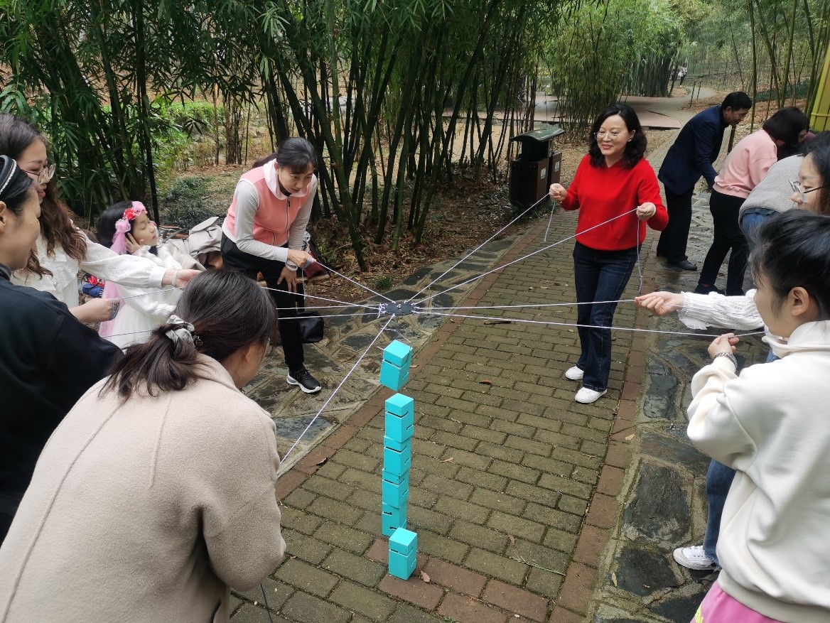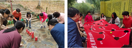 活动设有热身组队、游戏两个环节。芙蓉花开、芳香四溢,在欢声笑语中一支支各具特色的小分队组建完成,热情洋溢的队名、口号响彻在美丽的山水间。游戏环节包括“步步高升”、“移花接木”、“世界球”三个活动,各个队员们在活动中,团结协作,友爱互助,为团队的荣誉而全力拼搏。整场活动既紧张激烈又不失趣味性,充分展现出能动学院女教师激情拼搏、团结协作的精神风貌。