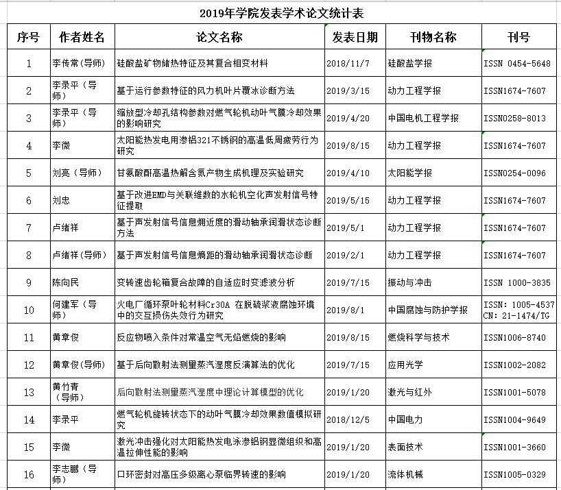 2019年学院发表学术论文统计表