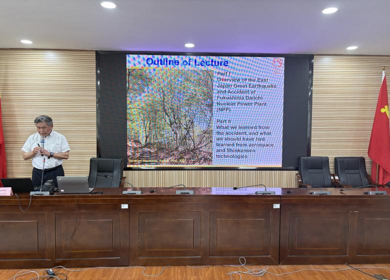 圆山重直教授开展了题为“Breakdown of Safety Myth in Gigantic Systems: What we learned from the Fukushima Daiichi accident, and what we should have had learned from aerospace and Shinkansen technologies(巨型系统中的安全神话破灭:福岛第一核电站事故的教训与航空航天及新干线技术本应带来的启示)”的学术讲座。讲座上,圆山重直教授深入分析了2011年东日本大地震及福岛第一核电站事故,并探讨了从中吸取的教训。讲座首先介绍了核电站的基本工作原理,随后详细回顾了福岛第一核电站1号和3号机组因地震引发的氢气爆炸事件,通过实际照片和模拟仿真直观展示了灾害影响。讲座还讨论了1975年Rasmussen报告关于核反应堆安全性的预测,并指出该报告低估了极端自然灾害的影响。此外,讲座强调了借鉴日本新干线先进的早期预警系统的重要性,以及东北电力公司女川核电站在这次灾难中的有效抗震设计和应急响应机制。最后,讲座总结了提升核设施安全标准的必要性,呼吁加强国际合作和技术交流,以预防未来类似悲剧的发生。