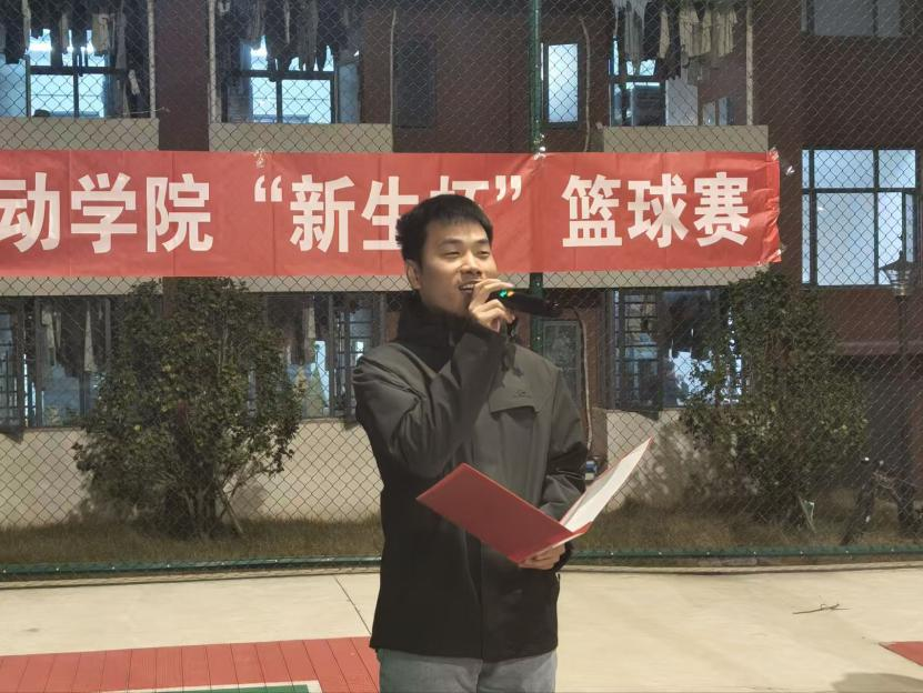 11月28日晚,能动学院2025级“新生杯”篮球赛开幕式在至诚轩5栋旁篮球场顺利举行。学工办辅导员李逸奇、院团委学生会体育部成员及100余名参赛队员参加开幕式。开幕式由体育部干事王振昊主持。
