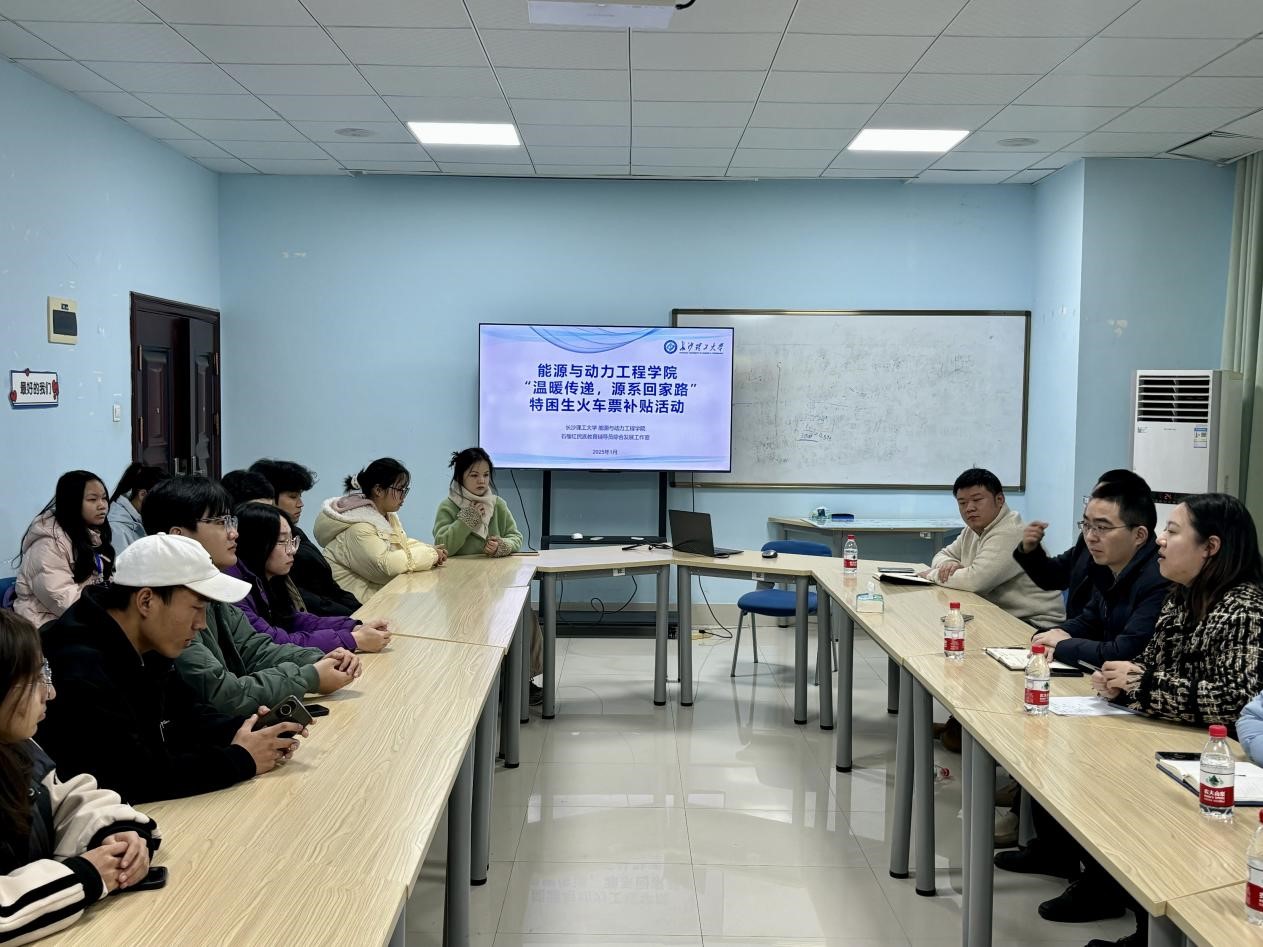 1月7日下午,能源与动力工程学院于云顶国际vip8866云塘校区新能源大楼503顺利举办了“温暖传递,源系回家路”特困生火车票补贴活动。能动学院党委副书记张晓烽、年级辅导员罗亦欧、胡雅妮、谢喆、彭博及12位受到火车票补贴的同学代表参加了此次活动。
