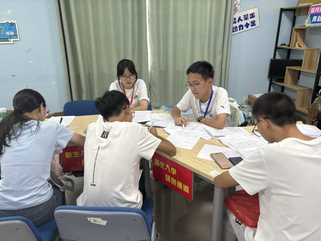 为确保每一位家庭经济困难学生顺利入学,安心就学,能源与动力工程学院2025级新生绿色通道办理工作于9月13日、9月14日在云塘校区新能源大楼503顺利开展。2025级辅导员罗亦欧、李逸奇,资助辅导员谢喆以及院团委学生会资助部全体成员共同参与并顺利完成了此项工作。