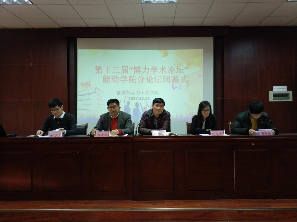 2017年12月22日上午,云顶国际vip8866第十三届“博力学术论坛”能动学院分论坛闭幕式在云塘校区工科一号楼428报告厅举行。院党委副书记杨雪峰,专业教师任延杰教授出席闭幕式,全体在校研究生参加活动,闭幕式由研究生班主任李小军主持。