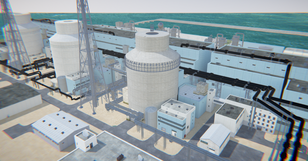 仿真系统以AP1000核电站机组为原型,采用三维虚拟仿真技术,对核岛场景按照设计院设计资料、厂区图纸等进行1:1三维模型搭建,实现对核电站全厂场景的逼真模拟重现,其中核岛可进行三维模型半剖显示。包括电厂主要职能部门的布置、所有设备和系统之间的物理关系、重要设备的模拟操作和参数显示、主要系统的装配、重要操作的可行性试验。可实现虚拟人物在仿真范围内的全厂漫游功能,通过漫游了解电厂的建筑布局、主要设备、生产工艺等,对核电站全貌建立直观的感性认识。
