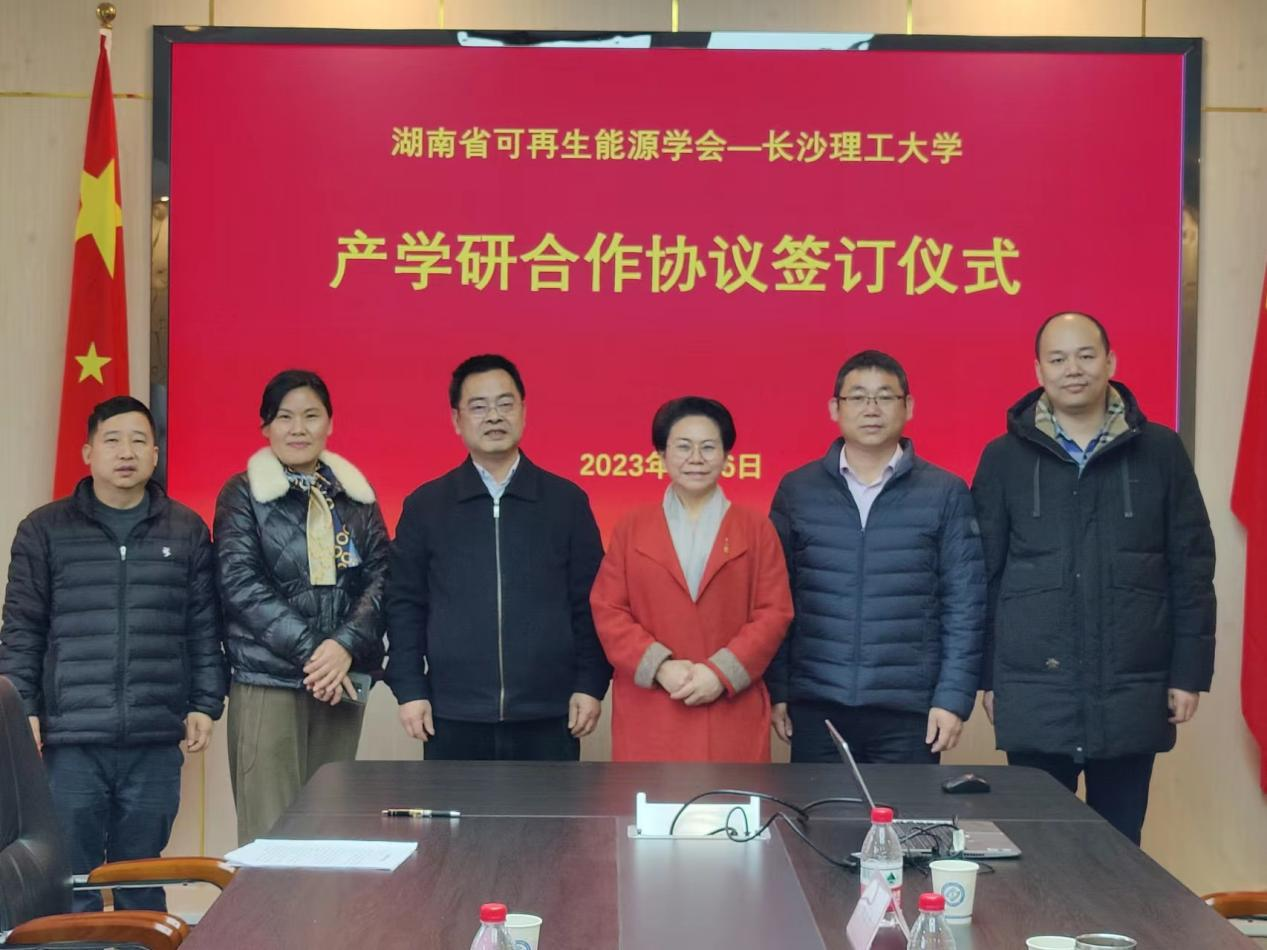 陈荐院长对湖南省可再生能源学会陈丽华执行会长一行表示热烈欢迎,详细介绍了我院学科专业平台、师资队伍、人才培养、科研方向等情况;陈丽华会长介绍了湖南省可再生能源学会成立于2018年,以及近几年在联系政产学研金和推动可再生能源产业发展方面所取得成绩;双方就合作事宜进行了商谈,表示将加强紧密合作,共同致力于“双碳”目标,并签订了产学研合作协议,会后陈丽华执行会长一行还参观了我院专业实验室。(文/图 樊门 审/何建军)