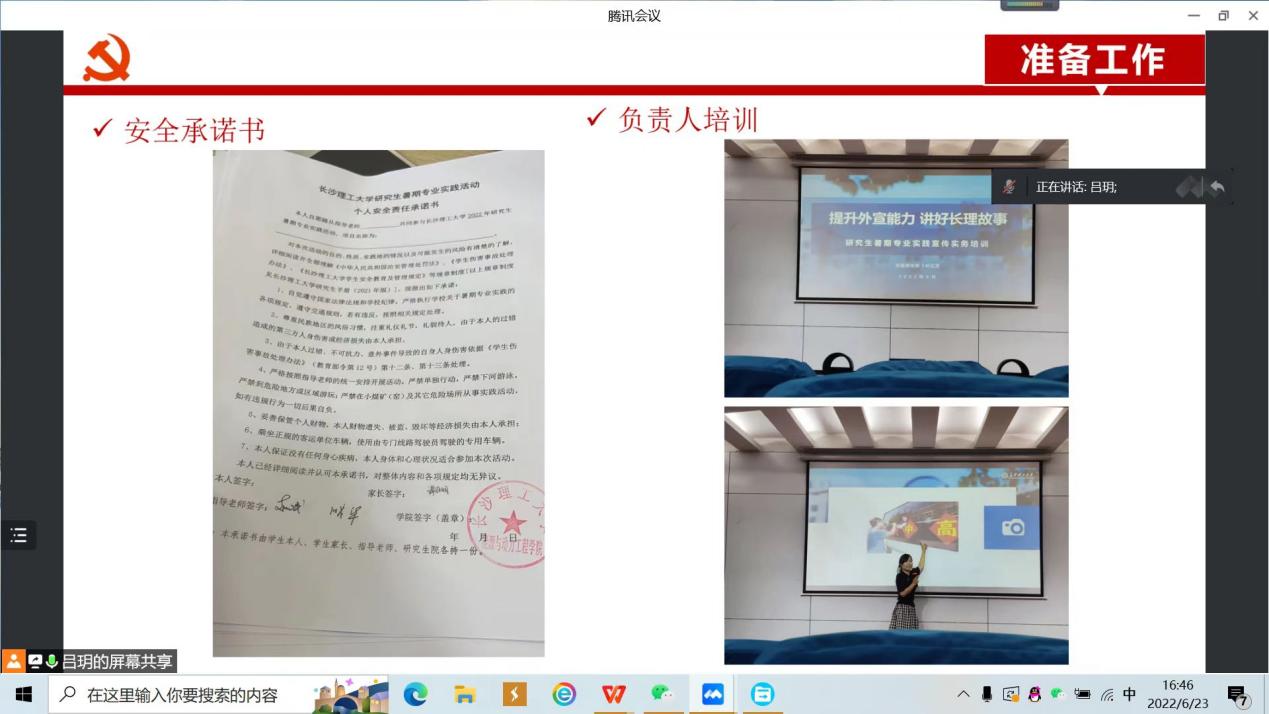 会议上,吕玥从项目介绍、准备工作、阶段计划和结项要求四个部分做了汇报,其中包含队服制定、安全承诺书和负责人培训等细节,并提出下一阶段实践团队的工作安排。团队指导老师赵斌曾作为中组部团中央第17、18批援藏博士团成员,在藏3年8个月零八天,援藏结束后指导云顶国际vip8866能动学院、电气学院共4名研究生从事西藏太阳能利用方向的专业实践。为保证此次实践安全、务实、高效地顺利进行,他从自身经历出发,着重强调了解民风民情、做好防护等前期筹备工作的重要性,组织成员明确分工,在调查研究中发现问题、对照检查、深化感悟、寻找措施。他也鼓励同学们把调查研究的结果转化为科学决策的有力依据,形成求真务实的调查研究之风。