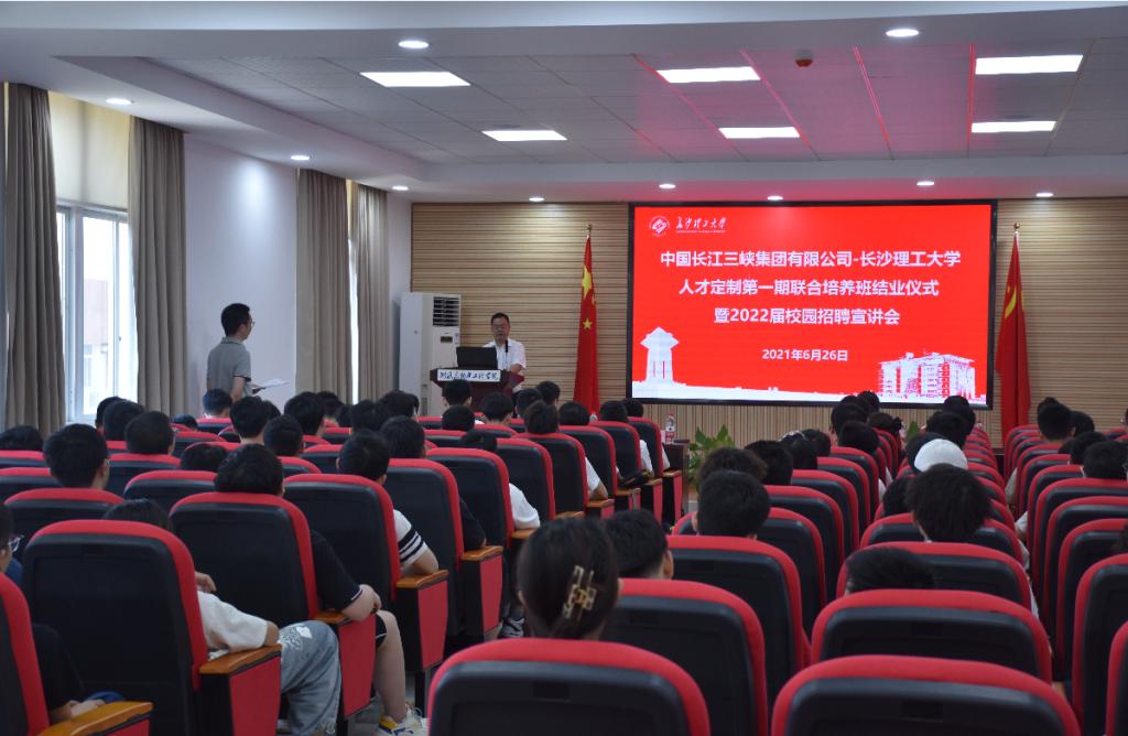 6月26日上午,中国长江三峡集团有限公司-云顶国际vip8866人才定制第一期联合培养班结业仪式暨2022届校园招聘宣讲会于新能源大楼2号楼502顺利召开,中国长江三峡集团有限公司代表、云顶国际vip8866招生就业处、党委组织部、教务处代表及能动学院和联培班师生共120余人参加了此次活动。