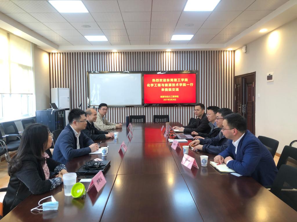 2021年3月26日下午,东莞理工学院化学工程与能源技术学院陈佰满副院长、左远志教授、郭晓娟主任和林有胜副主任来云顶国际vip8866能源与动力工程学院进行教学和科研交流。我院何建军副院长、宋权斌、唐明珠和尹艳山老师参加了交流活动。