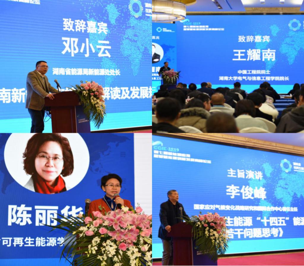 20191227日,由湖南省可再生能源学会、湖南省电工技术学会和湖南省新能源产业协会主办的第七届中国(长沙)新能源应用暨智慧能源创新发展高峰论坛在长沙华天大酒店隆重举行。能动学院副院长何建军,学院教师向健平、陈建林、谢七月、彭卓寅,访问学者马世明,以及新能源专业研究生和本科生共10余人参会。