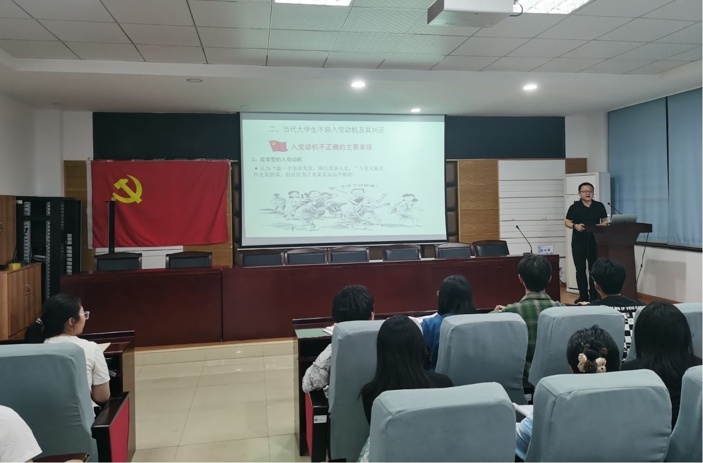 5月7日晚19:00,机械与运载工程学院联合国际学院在工一B417教室举办专题党课培训。经济与管理学院党委副书记、副院长汪功伟以《端正入党动机 加强党性修养》为主题,为两院第22期发展对象培训班学员作专题辅导。