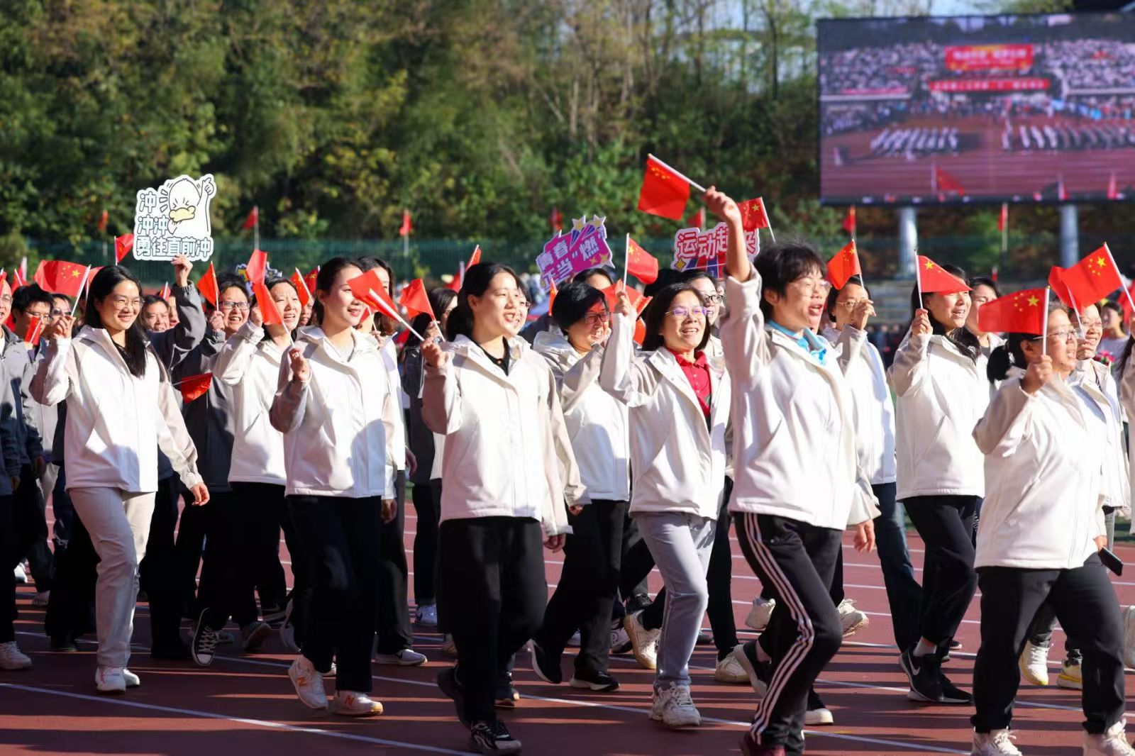体育运动恰似人生舞台的缩影,于方寸之间演绎着高潮迭起和低谷徘徊。运动员们努力拼搏,奋力追赶,将汗水抛洒在跑道上,将笑容展现在领奖台上。观众席的同学们也满腔热血,为运动员加油呐喊,擂鼓助威。