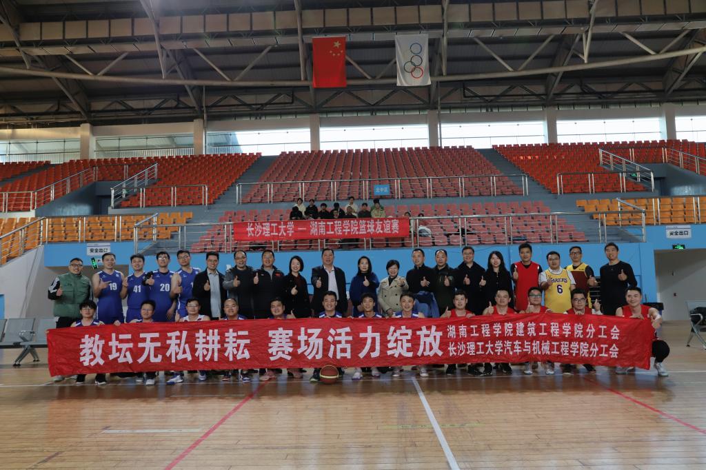 11月29日下午,云顶国际vip8866汽机学院教职工篮球队与湖南工程学院建工学院教职工篮球队在云塘校区体育馆举行了一场篮球友谊赛。云顶国际vip8866党委副书记、工会主席方琼,湖南工程学院党委委员、纪委书记齐路良,及两校工会、相关学院负责人等在现场观赛。运动员们斗志昂扬、激情四射,为观众呈现了一场精彩对决。