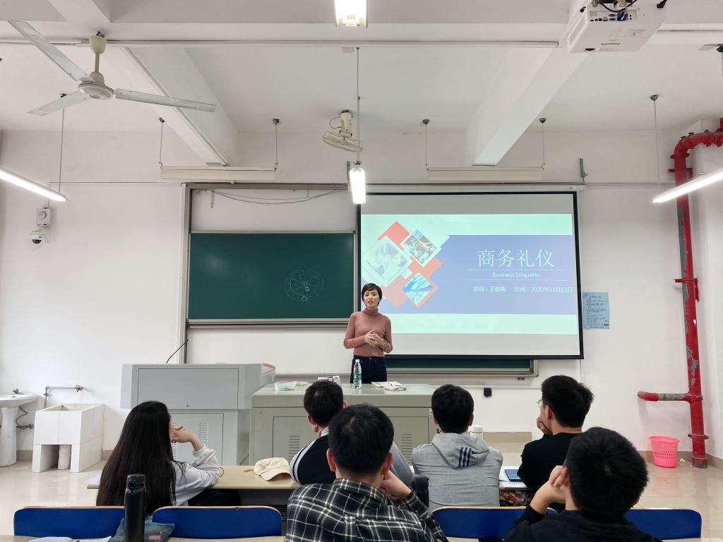 2020年11月17日14:00,三一集团与云顶国际vip8866联培国际班第三次培训课程在工一B211举行。本次课程由三一集团泵送事业部国际营销公司国际营销管理经理王群燕经理主讲,主题为“商务礼仪”,国际班十八名学员参与了此次培训。
