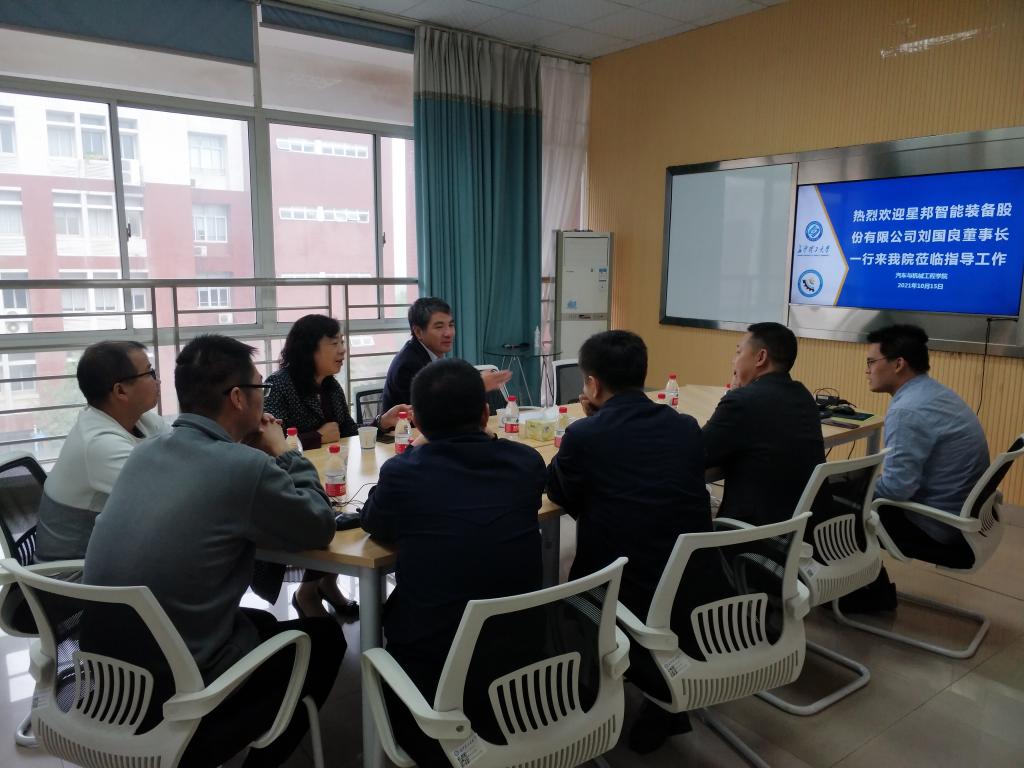 10月15日下午,湖南星邦智能装备股份有限公司董事长、我院86级校友刘国良来汽机学院开展产学研合作洽谈。学校校友会秘书长、教育基金会秘书长张美红、学院党委书记施一满、院长杜荣华、副院长胡林、尹来容及师生代表参加了洽谈会会议,会议由杜荣华主持。