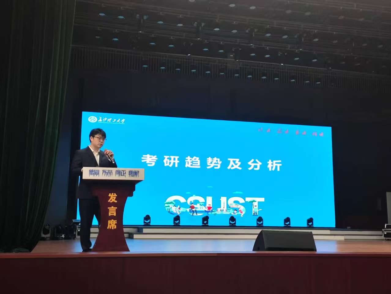 随后,针对同学们高度关注的考研方向,陈述老师带来了机械学院考研院校大数据专项解析。他重点强调专业课基础夯实对考研备考的核心意义,通过拆解国内机械类热门院校的报考热度、录取数据、考试科目设置等关键信息,为同学们提供了“适配自身实力、兼顾发展潜力”的院校选择思路与实操建议。同时,他动员同学们“早定目标、主动行动”,鼓励大家拓宽信息获取渠道、精准对接备考资源,把握考研黄金准备期。