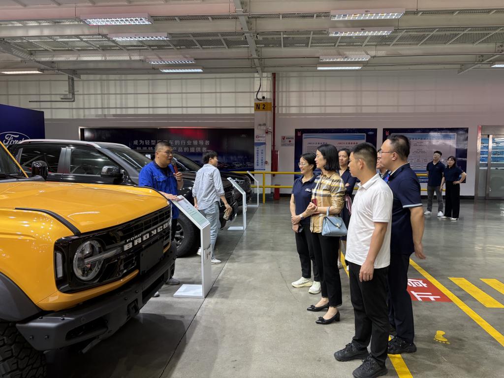 会后,调研团一行实地参观了江铃汽车富士工厂,深入了解智能化生产线、精益制造流程及汽车关键部件的生产工艺。许兰锋副总裁结合工厂运营情况,详细讲解了企业在制造领域的创新实践。
