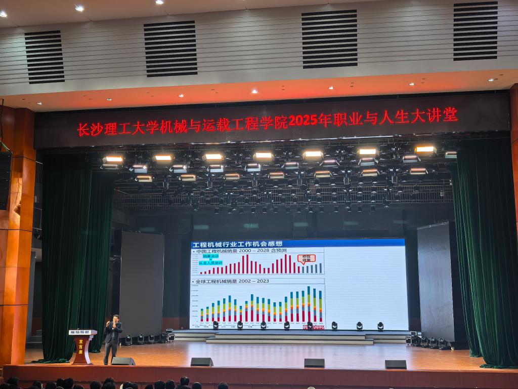 讲座中,李晓政校友以自身学习与职业成长轨迹为切入点,分享了多年深耕行业的实践经验。他着重强调,大学阶段是知识积淀与技能打磨的关键时期,鼓励同学们重视英语学习,持续提升跨语言沟通与应用能力。随后,他结合所在外企的员工职业规划体系,深入剖析了工程机械行业的发展趋势与职业机遇。他提到,当前全球工程机械市场规模持续扩大,需求保持稳步增长,机械专业学子需树立终身学习理念,不断提升综合素养,努力成为适应行业发展的“学习型人才”,方能在日趋激烈的竞争中站稳脚跟。