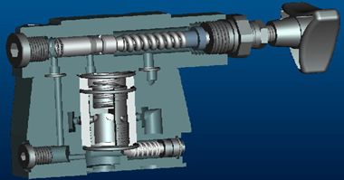 实验流程:首先按照液压与液力传动虚拟实验说明书,熟悉各种液压泵、马达、液压阀液压缸等液压元件的三维立体结构及工作原理,掌握各种元件的主要结构构造和零部件的组成,分析各种零部件的各自作用和设计、制造加工和装配的注意事项,最后能熟练应用PRO/E软件对部分液压元件进行三维建模。其次是熟练掌握各种基本液压回路的组成及其作用,并能根据工程需要设计较复杂液压系统。常用基本液压回路是用液压元件组成并能完成特定功能的典型回路,对于任何一种液压系统,不论其复杂程度如何,实际上都是由一些液压基本回路组成的。通过学习并掌握FluidSIM-H软件的基本使用方法,能熟练搭建液压基本回路和复杂液压系统,可设计和液压气动回路相配套的电气控制回路。弥补以前液压传动教学中,学生只见液压回路不见电气回路,从而不明白各种开关和阀动作过程的弊病,提高学生对电液压的认识和实际应用能力。其三是熟悉基于AMESim、MATLAB/SIMULINK的液压系统建模与仿真。要求学生首先能按照系统结构原理图选择液压元件,搭建液压系统的回路,然后利用仿真软件对所建液压系统进行仿真分析,接着能针对仿真结果找出影响系统性能的的主要因素,最后能提出改进建议并提出设计新方案。