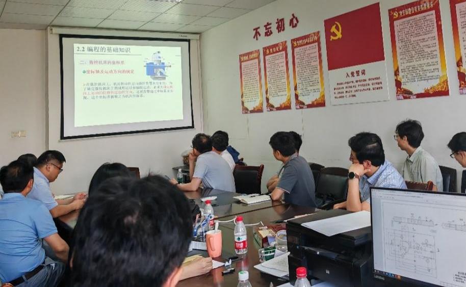 教研活动中,青年教师们围绕各自主讲的课程展开教学汇报。在说课环节,从课程概述、教学目标、教学内容、教学方法、考核评价、教学资源等方面进行了较为全面地介绍。在章节知识点讲解方面,王文涛老师以《智能制造系统及装备》课程中的高档数控机床作为典型智能装备,介绍了其在精密零部件专用制造等领域的应用;张航老师选取《数字图像处理》中的“视觉感知要素”章节,进行了模拟授课;戴隆州老师结合《数字化制造》中的“数控加工编程基础”章节,讲述了数控加工程序的编制规则、数控系统常用功能等内容;程波老师就《机械精度设计与检测》中“公差带大小和位置的标准化”知识点展开讲解;庞小通老师以《传动控制技术》课程中的“传动机构动力学分析”为例,讲述了多轴拖动系统中转矩、转速与功率的计算;方靖中老师围绕《嵌入式控制系统及应用》中的“嵌入式系统接口技术--GPIO端口”知识点展开教学。老师们教学准备充分,讲解过程中情绪饱满、详略得当、逻辑清晰,课件制作精美、内容深入浅出,部分老师还在课件中融入了科研前沿,具有较强的启发性。