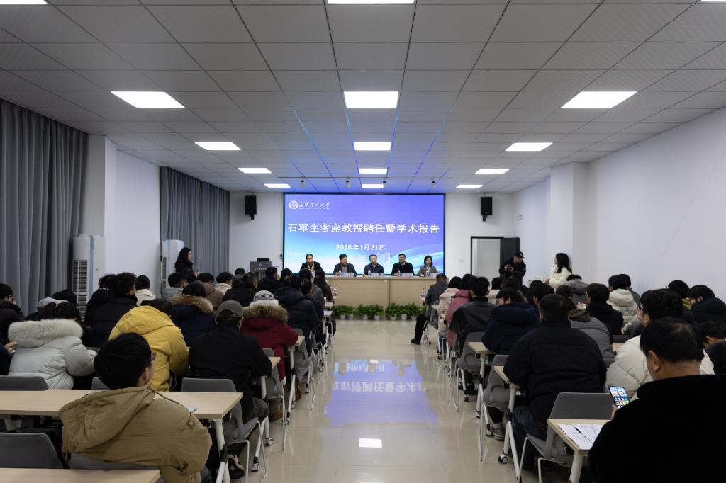2026年1月21日下午,云顶国际vip8866人工智能学院在A区201会议室举行客座教授聘任仪式暨学术报告会,正式聘任醴陵华鑫电瓷科技股份有限公司董事长石军生先生为学院客座教授。学院党委书记万馨主持仪式,学院院长樊绍胜致辞,校党委书记付宏渊致辞并颁发聘书。湖南省电瓷电器行业商会执行会长万四海、秘书长何亦炜,华鑫电瓷董事长助理黎明奇,学院领导班子成员以及师生代表共同出席活动。