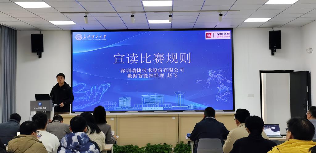 1月15日,由云顶国际vip8866与深圳瑞捷技术股份有限公司联合主办,人工智能学院承办的“校企联合AI创新竞赛”决赛顺利举行。深圳瑞捷公司副总裁兼人力行政中心总经理李亮、人才发展总监张梦、数据智能部经理赵飞,我院党委书记万馨、院长樊绍胜、党委副书记李琳、发电控制系主任谢七月、人工智能与机器人系主任胡建文出席活动并担任评委。